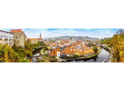체스키 안에 있는 어느 마을에서도 성을 바라볼 수 있으며, 성의 청탑에서 내려다보는 예쁜마을의